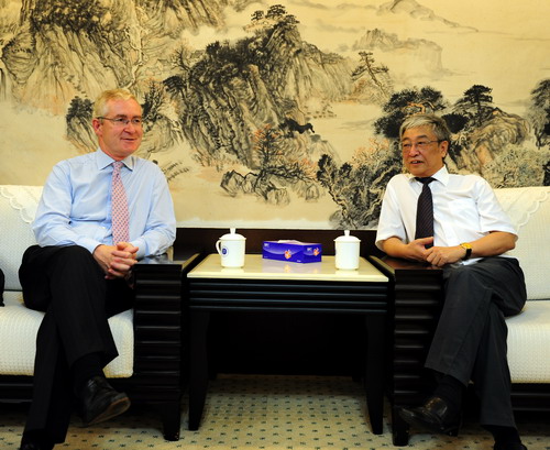 7月13日下午,校长章必功、副校长阮双琛在学校办公楼205贵宾室会见了专程来校访问的都柏林大学校长Hugh Brady一行。双方就两校间的合作与交流进行了亲切友好的会谈。我校医学院、国际拓展部负责人参加了会见。 (国际拓展部 供稿)