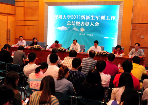 9月29日下午,我校在国际会议厅D厅召开2011级新生军训工作总结暨表彰大会。校党委书记江潭瑜、副校长李永华和学生部、武装部、后勤部、保卫部、计划财务部、宣传部等部室负责,及全体参加军训教师出席会议。会议由李永华主持。 会上,军训一团政委李卫英、二团政委方琳、三团政委程浩分别汇报各团军训工作情况。 校武装部部长谢海均总结了我校今年军训工作。我校今年共有6080名新生参加...