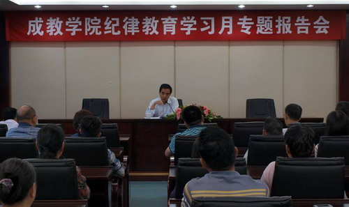 10月26日,成教学院举办纪律教育学习月专题报告会。会议邀请了学校党委副书记、纪委书记陶士平同志为全体教职员工作反腐倡廉专题辅导报告。成教学院和全体教职员工参加了报告会。 陶士平的报告围绕“现状、分析、对策”三个方面内容展开。报告抓住重点,切中时弊,用大量数据和事例说明了反腐倡廉的严峻形势和开展教育活动的重大意义,深刻剖析了近几年来发生的违纪违法事件的成因。陶士平就廉政工作提出...