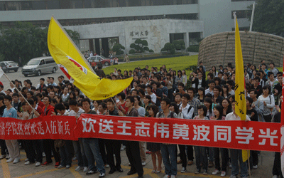 携笔从戎,保家卫国;脚踏实地,自强不息。12月13日,我校2007年新兵入伍欢送仪式在演会中心广场隆重举行。党委书记江潭瑜亲自为入伍学生佩戴大红花和校徽。前来参加欢送仪式的有各学院老师、同学及部分学生家长和亲友。