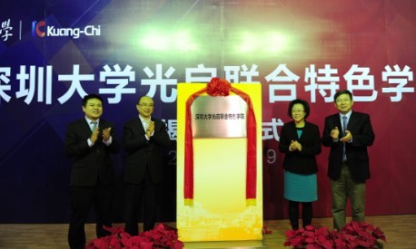 12月19日上午,乐竞平台光启新材料特色学院签约暨揭牌仪式在深圳光启高等理工研究院软件大厦报告厅隆重举行。深圳市市长许勤,副市长吴以环,市政府秘书长高振怀、副秘书长黄国强,深圳市科技创新委员会主任陆健,深圳市委教育工委书记、市教育局局长郭雨蓉,深圳光启高等理工研究院院长刘若鹏、常务副院长张洋洋,我校校长李清泉、副校长邢锋,深圳超材料产业联盟的企业家代表、深圳光启高等理工研究院和深大师生代表出席了仪式。仪式由高振怀主持。