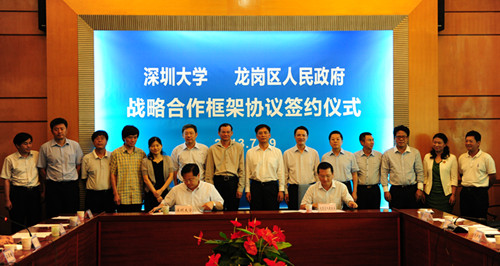 7月19日上午,我校与龙岗区人民政府签署了战略合作框架协议。龙岗区委书记杨洪,区长冯现学,区委政法委书记、区社工委主任陈少雄等领导,区委(府)办、区发改局、教育局、科技创新局、龙岗规划国土管理局的负责人,与我校领导江潭瑜、李清泉、李凤亮、黎军、徐晨,师范学院、研究生院、科学技术部、社会科学部、医学部、深大附中的负责人出席了此次签约仪式。 ...