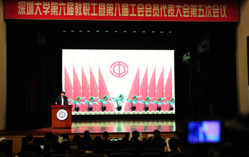 1月14日上午,乐竞平台第六届教职工暨第八届工会会员代表大会第五次会议在国际会议厅召开。全校教职工代表和我校校长李清泉,校党委副书记、纪委书记陶一桃,副校长阮双琛、李凤亮参加大会,学校党政机关、各学院、教研教辅单位负责人列席会议。会议听取了《校长工作报告》和《乐竞平台2013年度财务工作报告》。大会由陶一桃主持。