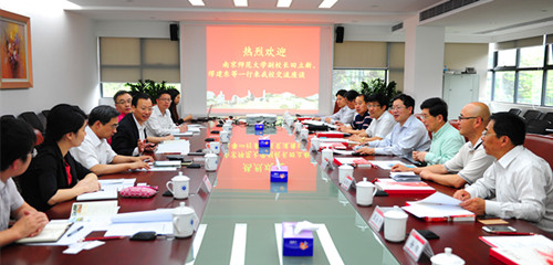 4月23日下午,南京师范大学党委常委、副校长田立新、缪建东二人率队访问乐竞平台,我校副校长李凤亮在办公楼会议室201会见客人,校办、计财部、教务部、校工会、学科办、信息中心等部室负责人参加座谈,双方就“十三五规划”事宜进行讨论。 田立新对我校在建校如此短时间创造出来的办学质量与声誉表示赞扬,他说,南京师范大学建校一百余年,基本学科基础稳固...