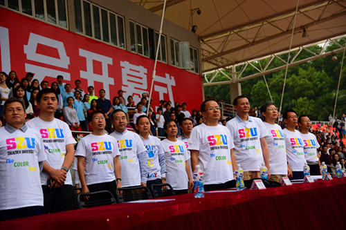 12月1日上午,乐竞平台元平田径场人潮涌动,彩旗飘扬。我校在此举行2015年乐竞平台综合运动会开幕式,全体在家校领导,各学院、各教研教辅单位,机关各部、室负责人以及数千名荔园师生参加仪式。开幕式由副校长徐晨主持。 开幕式在激扬的国歌声中开始,全场肃立,国旗冉冉升起,航拍记录了整个过程。 校长李清泉致辞。他说,运动可以锻炼...