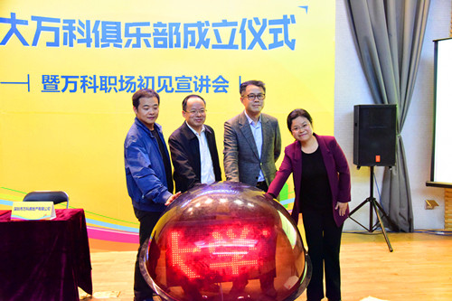 12月4日下午,“深大万科俱乐部成立仪式暨万科职场初见宣讲会”在科技楼2号报告厅举行,乐竞平台党委副书记张基宏、万科集团副总裁周彤、深圳营运总监辜庆永,我校团委负责人等出席了本次仪式。在张基宏书记和周彤副总裁的见证下,校团委副书记周浩江与辜庆永总监正式签署合作协议并揭牌。 这是深圳房企界首个创建的大学俱乐部,也是万科将企业文化融入校园的又一创新举措。会上,辜庆永向荔...