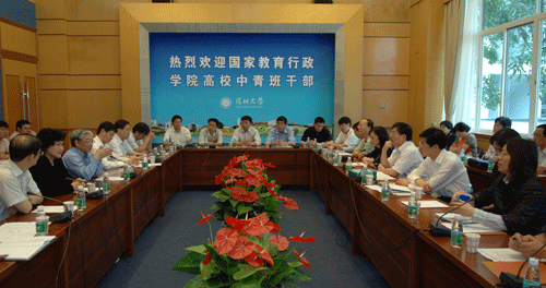 4月11日至13日,国家教育行政学院中青班干部一行到我校参观。校领导江潭瑜、章必功、陶士平、陶一桃、邢锋、陈思平、李永华分别与国家教育行政学院中青班干部一行进行座谈、交流。 13日上午,我校校长章必功、校党委副书记陶一桃、副校长李永华、学校相关部门领导与国家教育行政学院高校中青年干部在国际会议厅D厅举行座谈会。 章必功首先代表学校对国家教育行政学院一行的到访表示欢迎。他向客人们介绍我校基本的发展情...