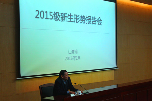 校党委书记江潭瑜为新生作形势报告