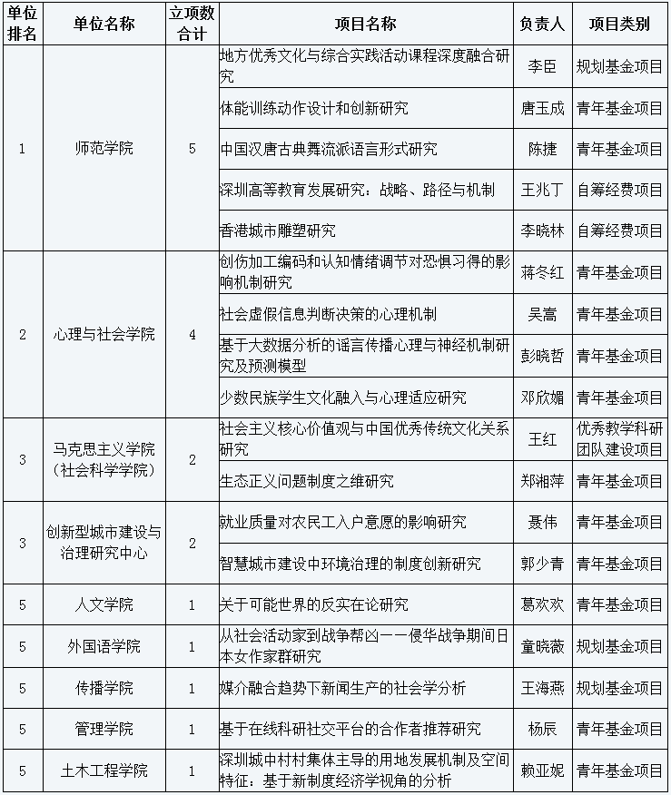 近日,2016年度教育部人文社科研究项目评审结果在社科网公示,我校共有18个项目获教育部资助,其中常规项目17项(含规划基金项目、青年基金项目、自筹经费项目),专项项目1项,常规项目立项数在全国高校中排名第9,在全省高校排名第2,全国排名比去年上升23名(去年全国排名第32名)。具体立项信息如下: (社会科学部 供稿)