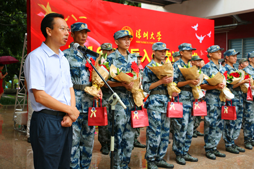 9月10日上午,我校在学生活动中心举行入伍新兵欢送仪式。副校长李凤亮,南山区武装部余富荣政委,校党委宣传部、各学院领导及师生代表、退伍学生代表冒雨出席了仪式。 我校自今年4月分开始启动征兵工作,共有200余名同学报名,经过选拔,最终有来自14个学院的27名学生顺利入伍,随后他们将奔赴各军区、战区单位,为我国国防贡献力量。 李凤亮向27名新入伍的同学表示敬意和祝贺。他说,作为一所现代大学,深大应该为我国国防...