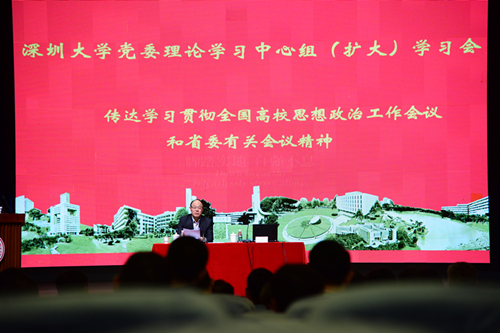 12月16日下午,我校在国际会议厅召开校党委理论学习中心组(扩大)学习会。我校党委委员,各行政副校长,各基层党委、党总支书记、副书记,各学院的班子成员,各直属教研教辅单位以及机关各部室正副职负责人等参加了会议。 12月7日至8日,全国高校思想政治工作会议在北京召开,习近平总书记出席会议并发表重要讲话,连日来在全国教育战线持续引发热烈反响。12月13日,中共广东省委组织部、省委宣传部、省委教育工委召开学习贯彻习...