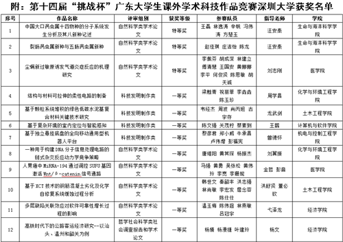 我校在第十四届“挑战杯”广东大学生课外学术科技作品竞赛喜获佳绩