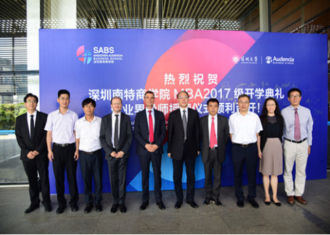 7月15日上午,深圳南特商学院MBA 2017级开学典礼暨业界导师授牌仪式在我校科技楼一楼顺利召开。法国驻广州总领事馆傅伟杰总领事、我校党委书记刘洪一、深圳南特商学院院长 Christophe Germain、法国南特高等商学院MBA及行政管理学院院长William Hurst教授,我校党政办、研究生院、学科建设与发展办、国际交流与合作部、计划财务部等部门领导出席了本次开学典礼。 法国驻广州总领事馆傅伟杰总领事表示很荣幸出席此次开学典礼,并...