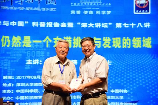 9月25日,“深大讲坛”第七十八讲在我校师范学院国际会议厅开讲。2016年度国家最高科学技术奖获奖者、中国科学院院士赵忠贤为我校师生带来了以“超导仍然是一个充满挑战与发现的领域”为主题的报告。校长李清泉出席,并为赵忠贤院士颁发了“深大讲坛”的纪念奖牌。 赵忠贤首先从超导体的基本特征和应用价值讲起。赵忠贤表示,超导体的应用涉及领域众多,包括交通、能源、健康、地质探测等,如脑磁图、无损检测、大地测量等的应用...