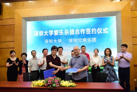 5月30日下午,师范学院(部)在国际会议厅D厅举行乐竞平台爱乐乐团签约仪式。校党委副书记范志刚,师范学院党委书记姚正武、院长钟曦,深圳交响乐团团长聂冰出席,师范学院师生、交响乐团四位专家参加。签约仪式由姚正武主持。 钟曦在仪式上致辞,他说,深圳交响乐团以追求国际一流、服务普通大众为理念,从1982年至今经过三十多年的不懈努力和追求,已跻身中国职业一流交响乐团的行列,是深圳城市文化软实力的一张亮丽的名片。...