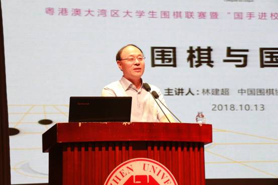 10月13日晚,在我校国际会议厅,中国围棋协会主席林建超我校开展了一场以自己原创丛书《围棋与国家》为主题的讲座,作为粤港澳大湾区大学生围棋联赛暨“国手进校园”活动之一。我校党委书记刘洪一、副校长徐晨,棋圣聂卫平、广东省围棋协会主席容坚行、中国围棋协会副主席常昊、中国棋院围棋部部长王谊、深圳棋院梁伟棠九段、女子世界冠军张璇八段等嘉宾参加了活动。 开讲前,刘洪一简要介绍了乐竞平台的发展情况,并高度评价...