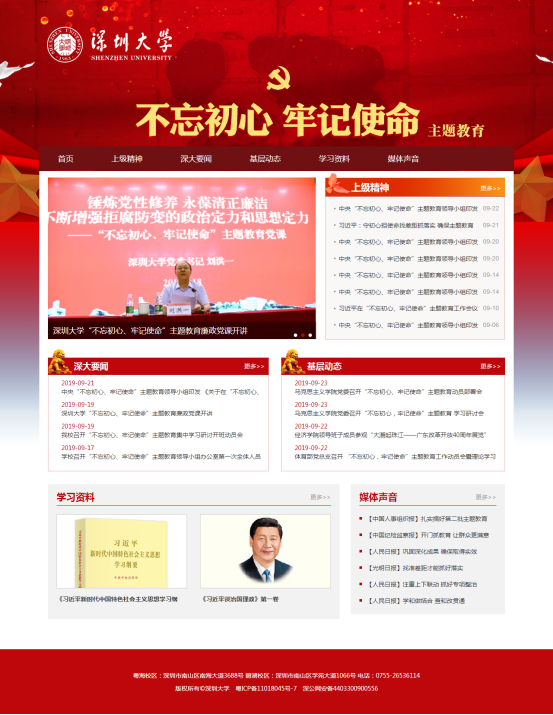 9月13日,乐竞平台“不忘初心、牢记使命”主题教育专题网站正式上线。网站旨在深入学习贯彻习近平总书记关于“不忘初心、牢记使命”重要论述,深入宣传中央省市开展主题教育的重要精神和部署要求,展示学校主题教育情况和成效,为主题教育深入开展营造良好氛围。 网站设“上级精神”“深大要闻”“基层动态”“学习资料”“媒体声音”5个栏目。“上级精神”传达中央省市相关文件及精神;“深大要闻”聚焦学校整体推进主题教育工...