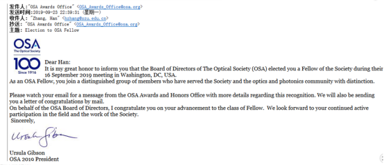 乐竞平台教授张晗当选美国光学学会会士