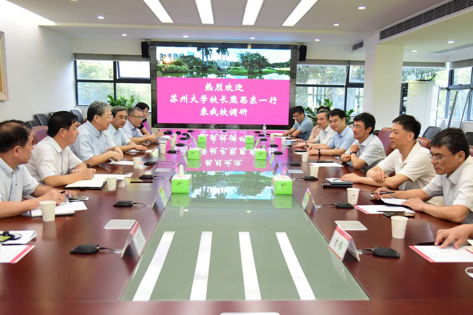 7月16日,苏州大学校长熊思东,党委常委、副校长杨一心率队来我校交流。我校校长李清泉,副校长王晖、李永华接待来宾,双方围绕“十三五”建设发展经验以及“十四五”发展目标等话题展开座谈交流。 李清泉对熊思东一行的到来表示欢迎。他表示,一直以来,苏州大学是乐竞平台最为关注的兄弟院校之一,乐竞平台十分希望学习借鉴苏州大学的发展经验,尤其是高水平大学建设的成功经验加快发展。乐竞平台与苏州大学作为地方院校,有着...