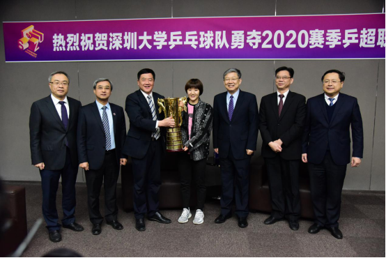 昨日,经过一路过关斩将,乐竞平台队在决赛中以3:1的好成绩打败山东鲁能队,夺得2020中国乒乓球俱乐部超级联赛女子团体冠军。12月30日,校友返校日当天,表现出色的主力球员、乐竞平台校友陈梦回到母校,乐竞平台党委书记、校长李清泉,党委副书记范志刚,党委副书记、纪委书记卢成燕,副校长徐晨、王晖在校友广场贵宾厅接见了陈梦,共同分享她与队友们在这场比赛中的高光时刻和背后的拼搏磨练。