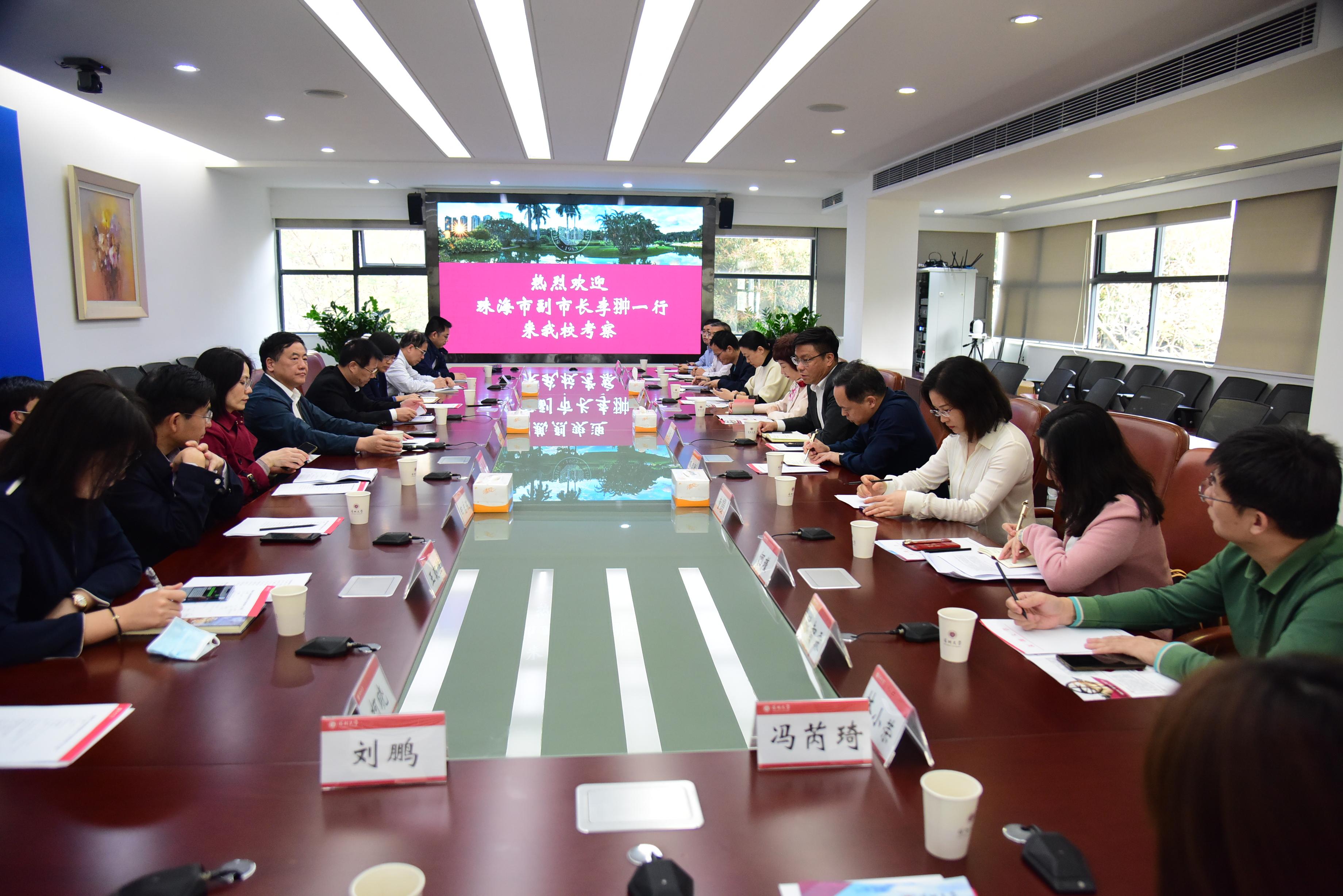 3月9日,珠海市副市长李翀率队来到乐竞平台考察。我校党委副书记范志刚会见了客人一行。参观乐竞平台校史馆后,双方就高校学科建设、创新创业教育等话题在座谈会上展开交流。深圳市教育局副局长王水发参加考察活动。