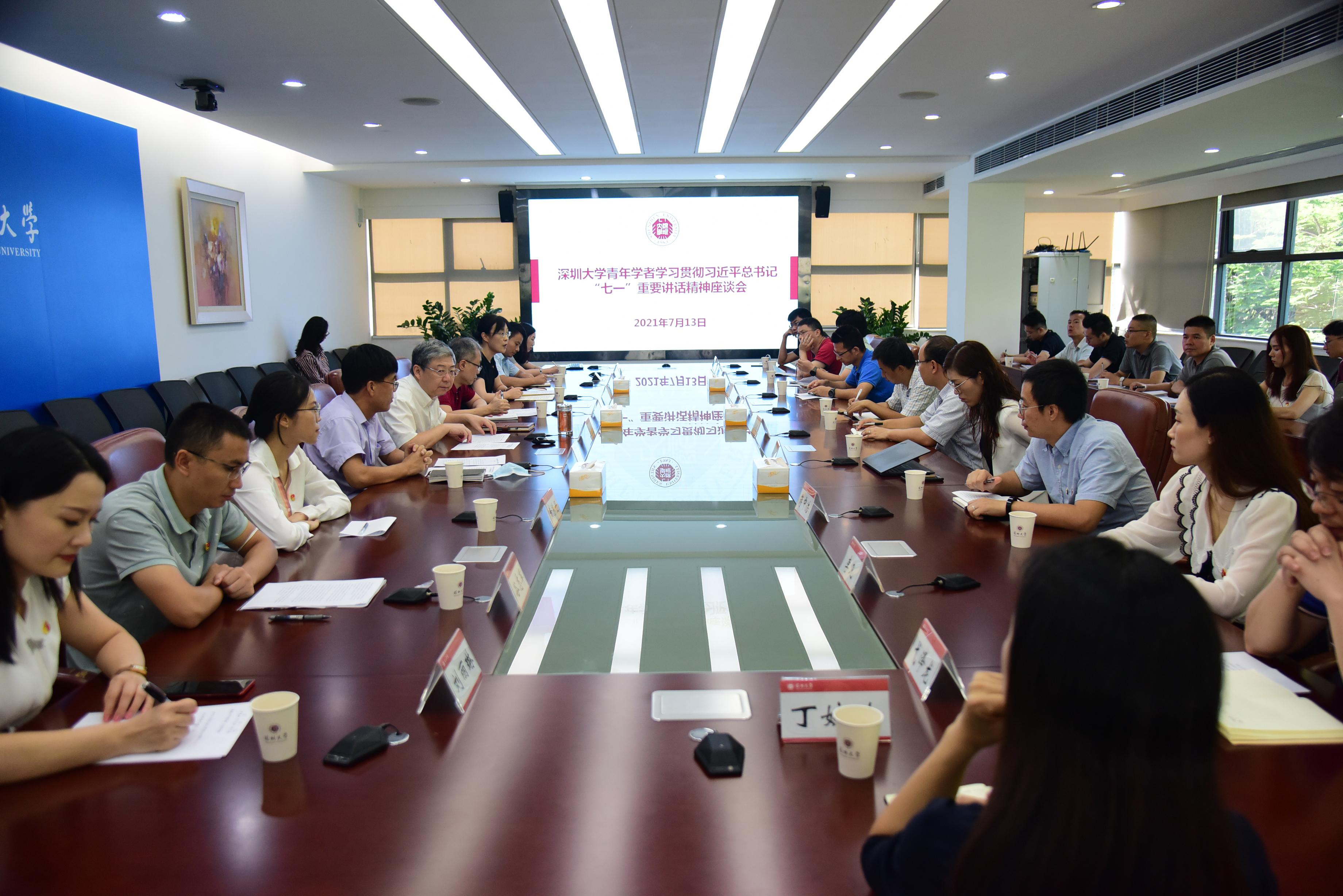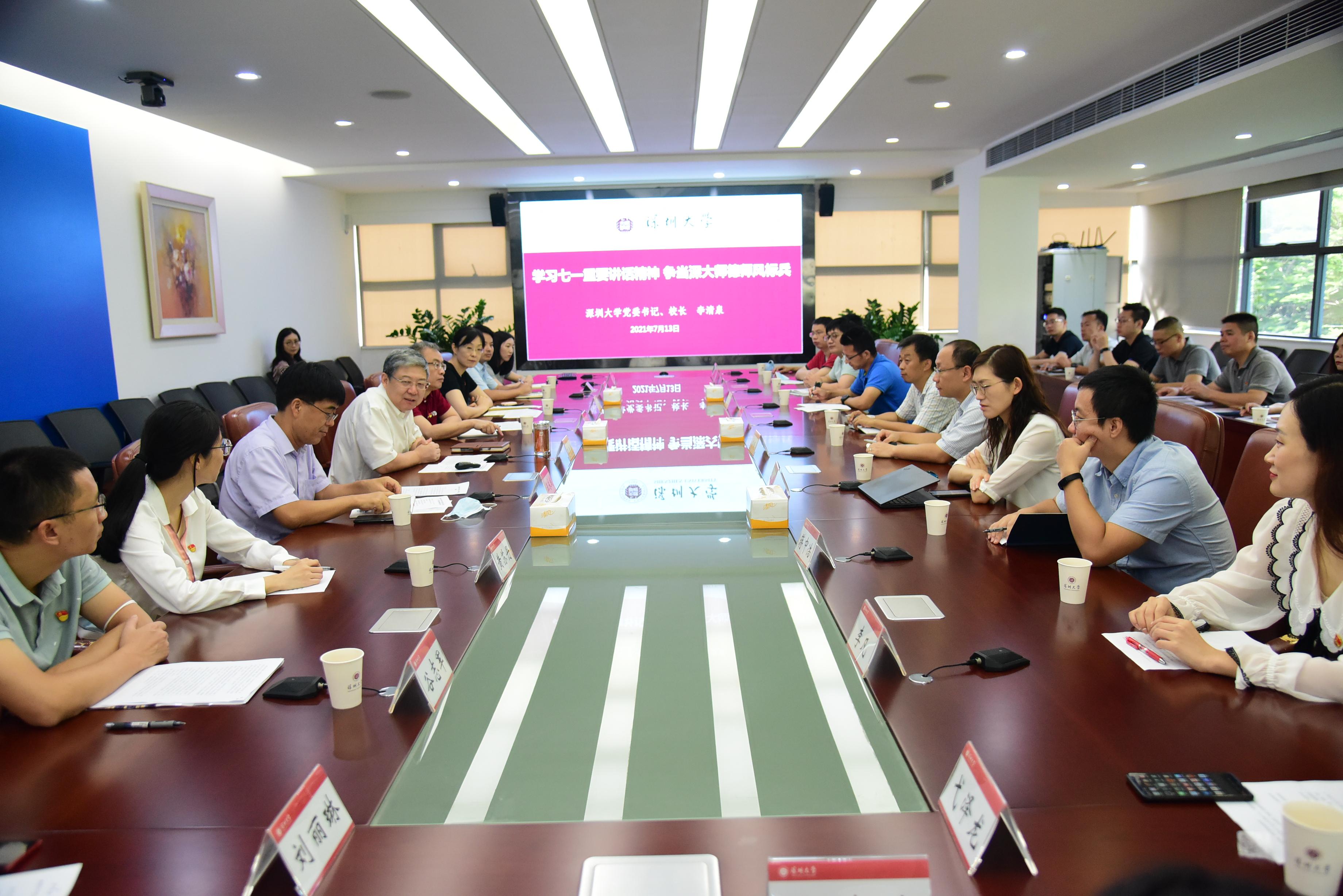 7月13日上午,我校在汇元楼201举行“乐竞平台青年学者学习贯彻习近平总书记‘七一’重要讲话精神”主题教育活动——书记、校长讲党课。我校党委书记、校长李清泉以《学习“七一”重要讲话精神,争当深大师德师风标兵》为题,为青年学者代表讲了一堂生动的党史学习教育专题党课。