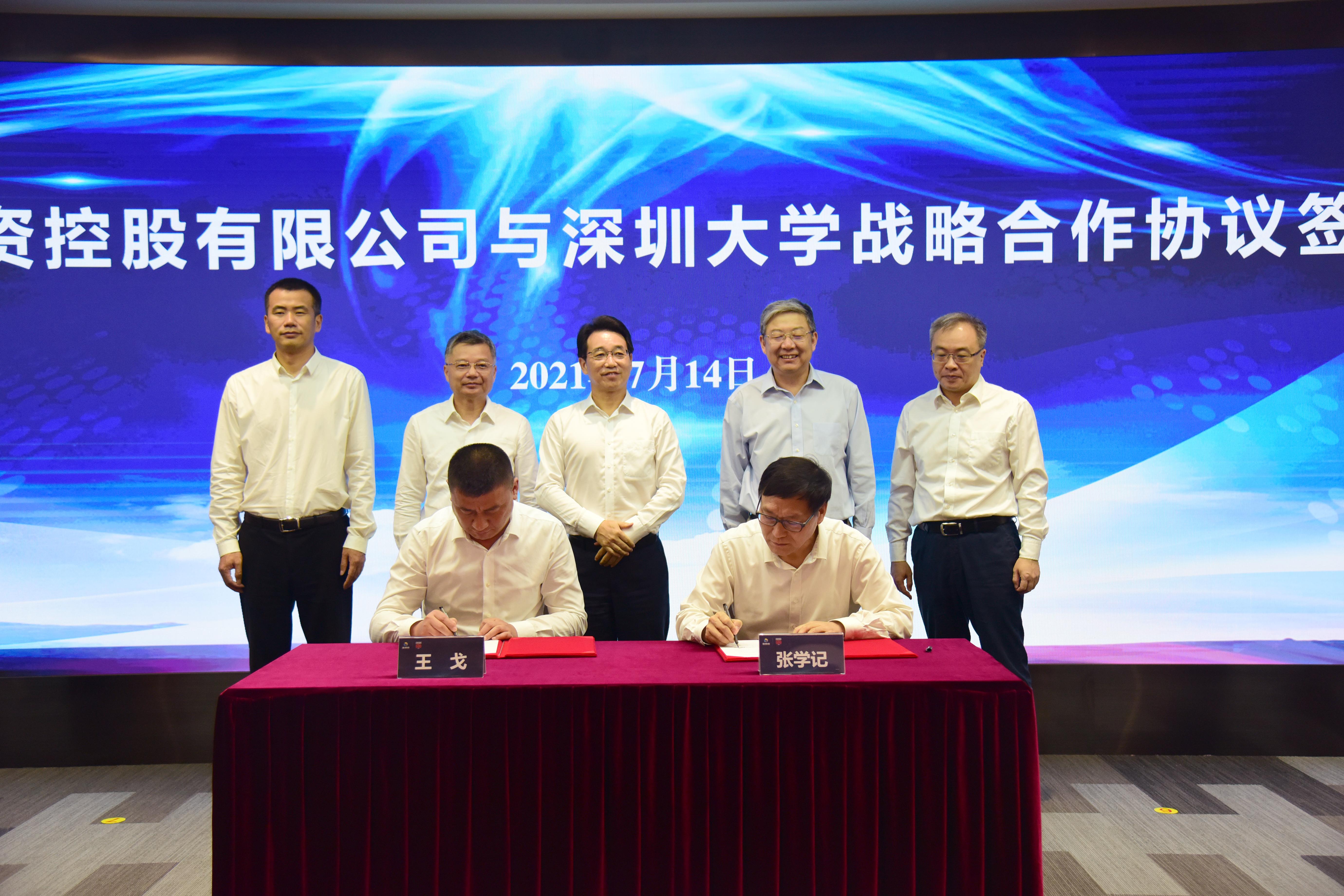 7月14日,我校与深圳市投资控股有限公司(以下简称“深投控”)在投资大厦4楼多功能厅举行签约仪式,双方签署战略合作协议,以实现资源共享与优势互补,共同探索校企合作创新模式。我校党委书记、校长李清泉,市国资委二级巡视员丘健明,深投控党委书记、董事长王勇健,深投控党委副书记、总经理王文杰出席签约仪式。我校党委常委、副校长张学记,深投控总工程师王戈作为签约代表签署合作协议。签约仪式由王戈主持。