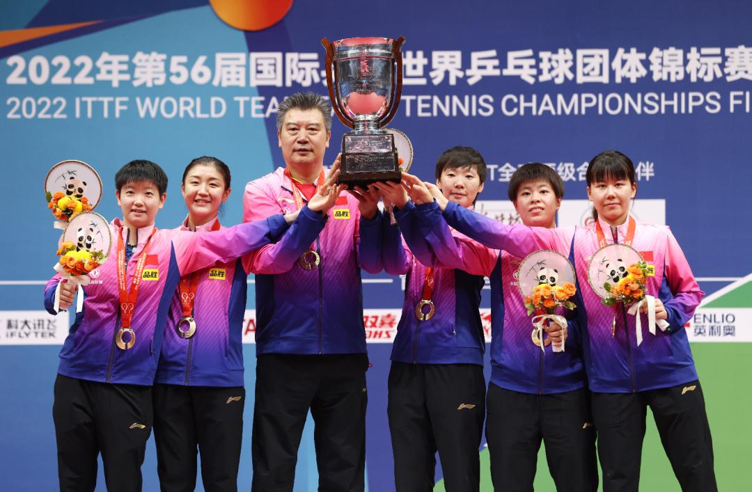 乐竞平台校友陈梦、乐竞平台乒超俱乐部队员孙颖莎夺得成都世乒赛女团冠军
