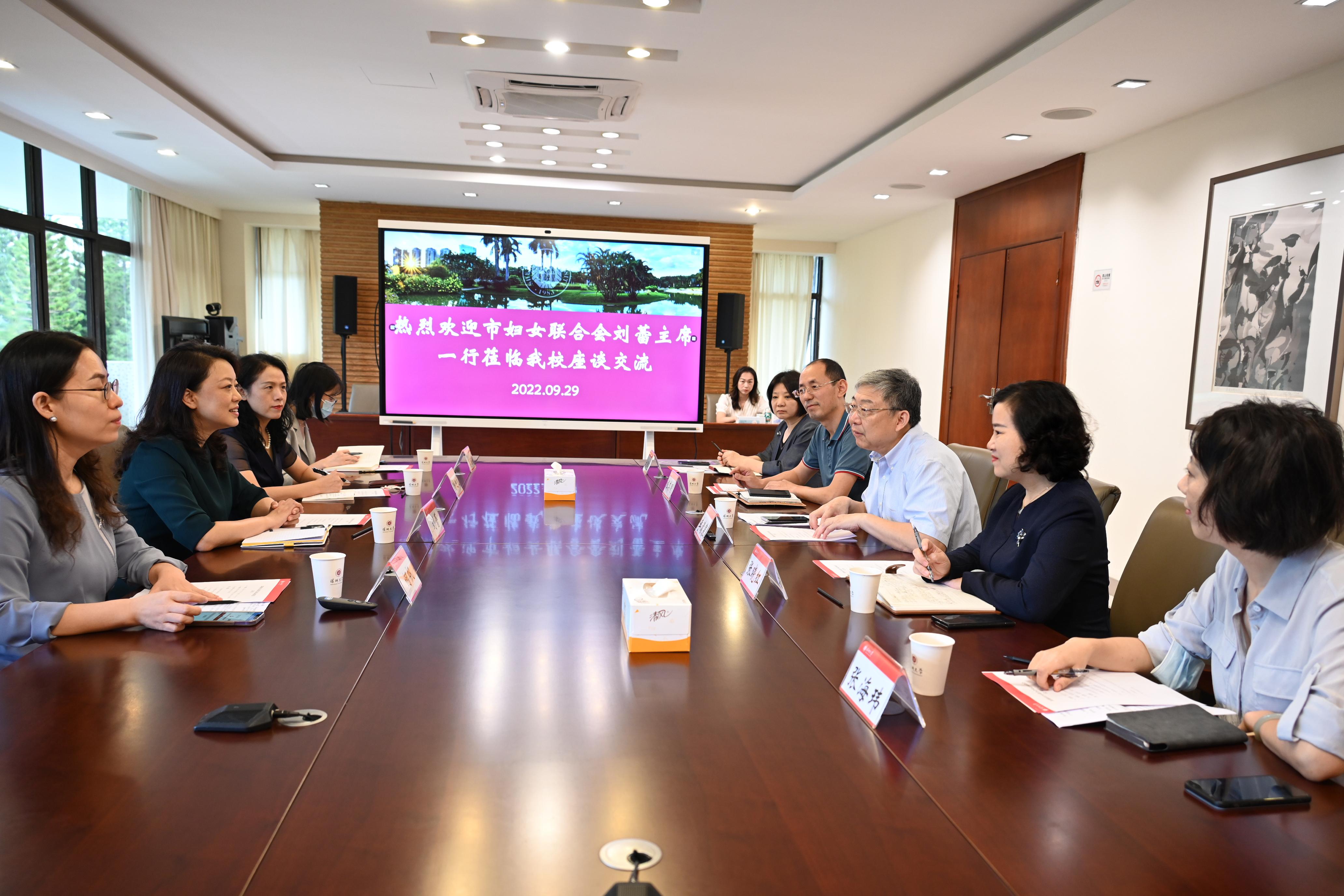 9月29日上午,深圳市妇女联合会主席、党组织书记刘蕾,副主席、党组成员彭迎九一行来访乐竞平台。学校党委书记李清泉、副校长张晓红一行接待来宾,双方在粵海校区汇元楼301会议室举行座谈交流,就双方开展合作、共同提升深圳市家庭教育专业服务等事宜展开探讨。张晓红主持座谈。