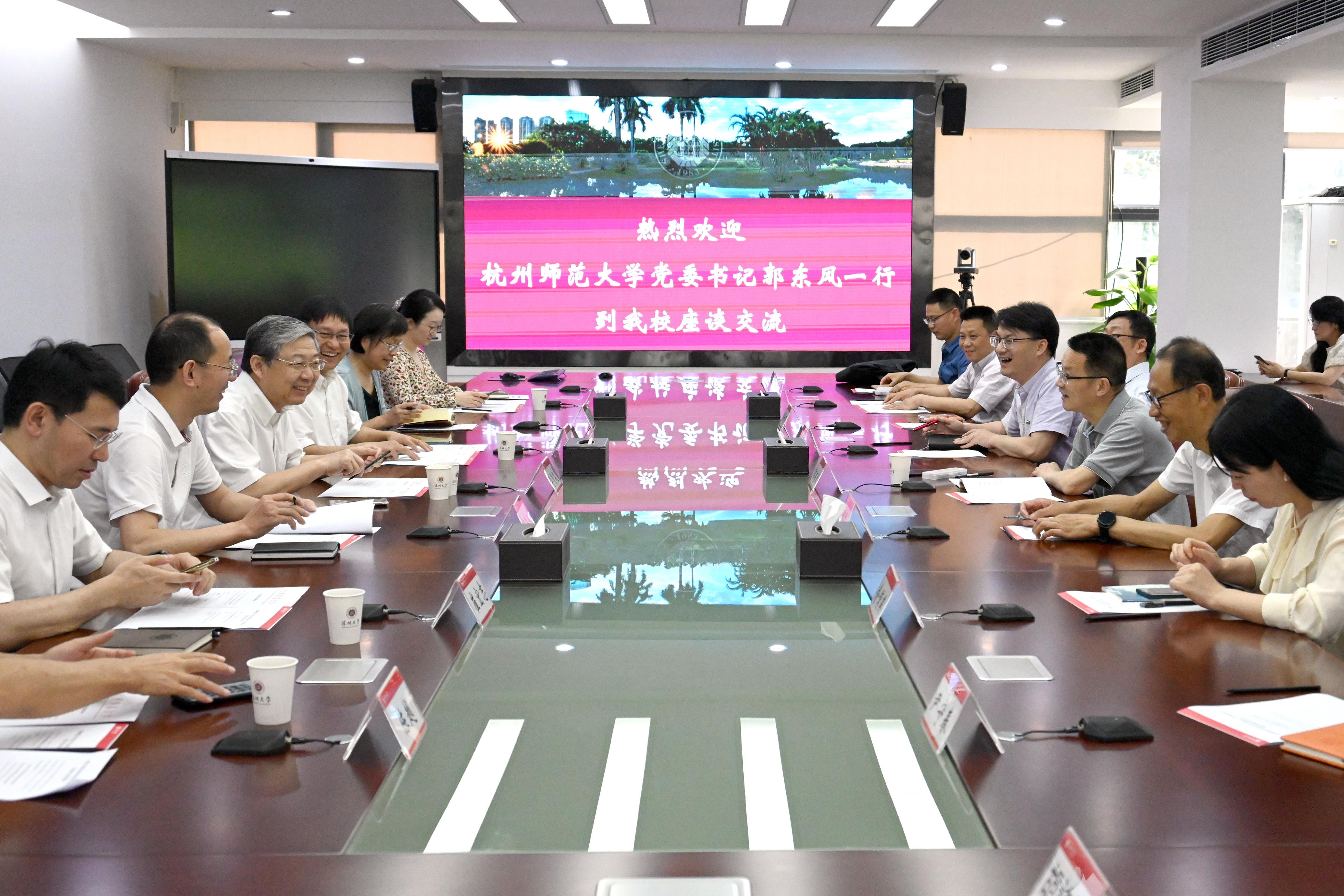 202306-21  杭州师范大学党委书记郭东风一行到乐竞平台调研交流6月21日上午,杭州师范大学党委书记郭东风一行带队到乐竞平台调研交流,乐竞平台党委书记李清泉会见来宾。会前,郭东风一行参观校史馆、二维材料光电科技国际合作联合实验室、国家级传播实验教学示范中心。随后,双方在汇元楼201会议室举行座谈,乐竞平台副校长张学记主持会议。
