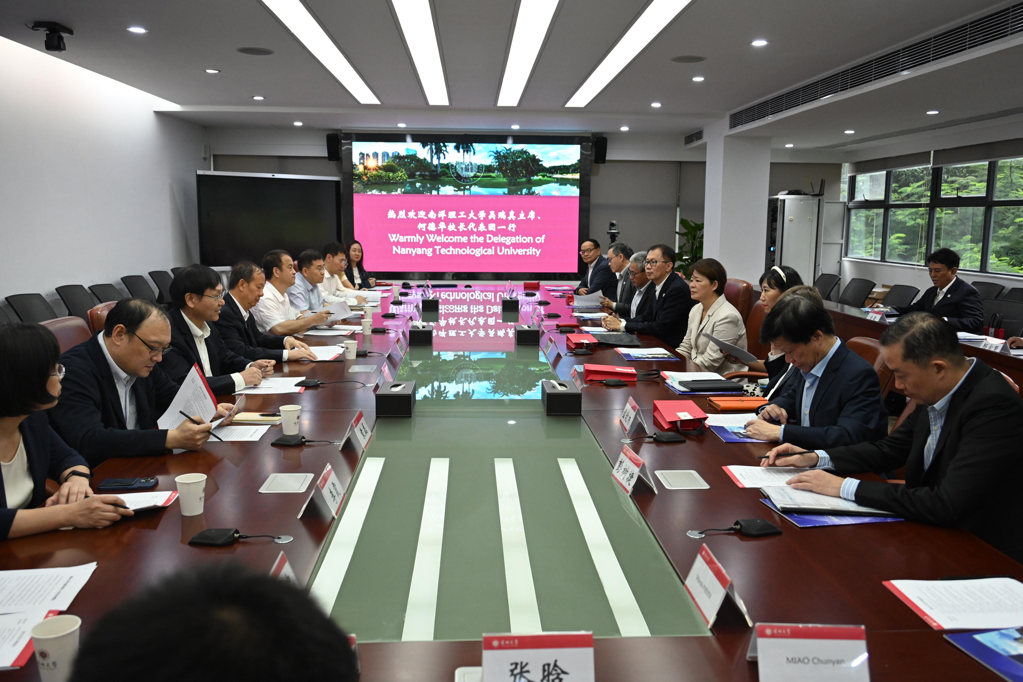 202309-07  南洋理工大学代表团来乐竞平台调研交流9月7日,新加坡南洋理工大学董事会主席吴瑞真、校长何德华教授一行来访乐竞平台。乐竞平台校长、中科院院士毛军发,副校长张学记、周辉在汇元楼201会议室接待来宾。双方就合作办学、科研共建等事项展开座谈。