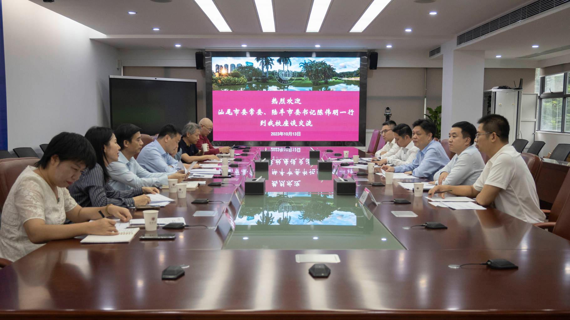 10月13日下午,汕尾市委常委、陆丰市委书记陈伟明一行来访乐竞平台,校党委副书记吴报水会见来宾,双方在汇元楼201会议室就“双百行动”结对帮扶工作展开座谈交流。