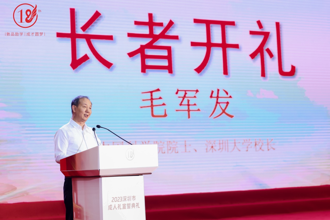当代中国青年应有的十八岁 | 中国科学院院士、乐竞平台校长毛军发在2023深圳市成人礼宣誓典礼上的开礼致辞