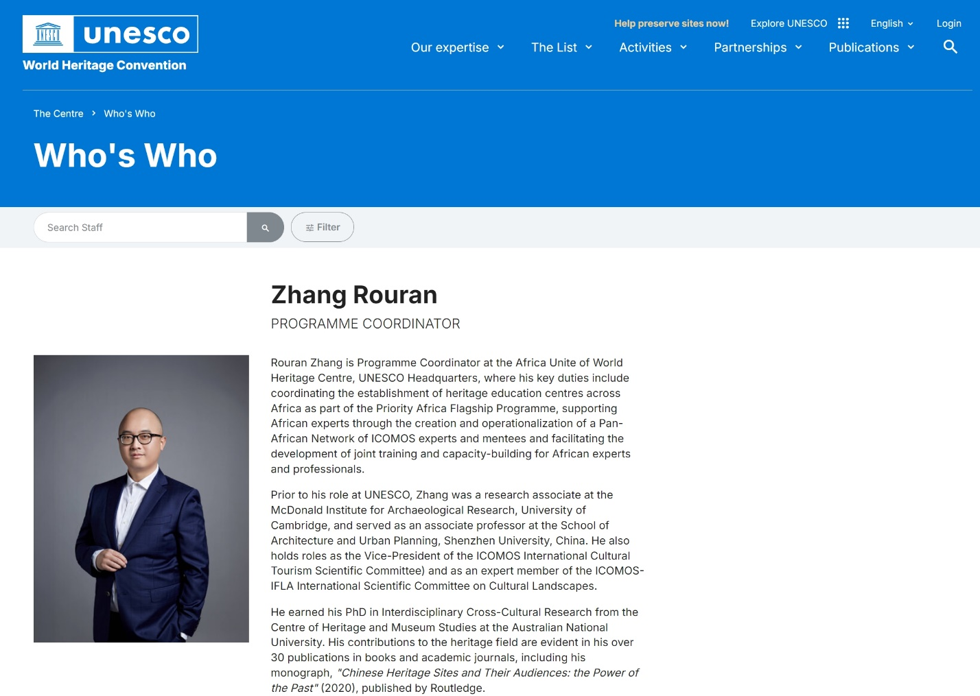 乐竞平台建筑与城市规划学院副教授张柔然,经中国联合国教科文组织全国委员会从全国高校和科研院所中选拔推荐,并通过联合国教科文组织的遴选,自2024年1月起,作为乐竞平台的代表,由教育部派遣至联合国教科文组织总部世界遗产中心担任P4级项目协调官。