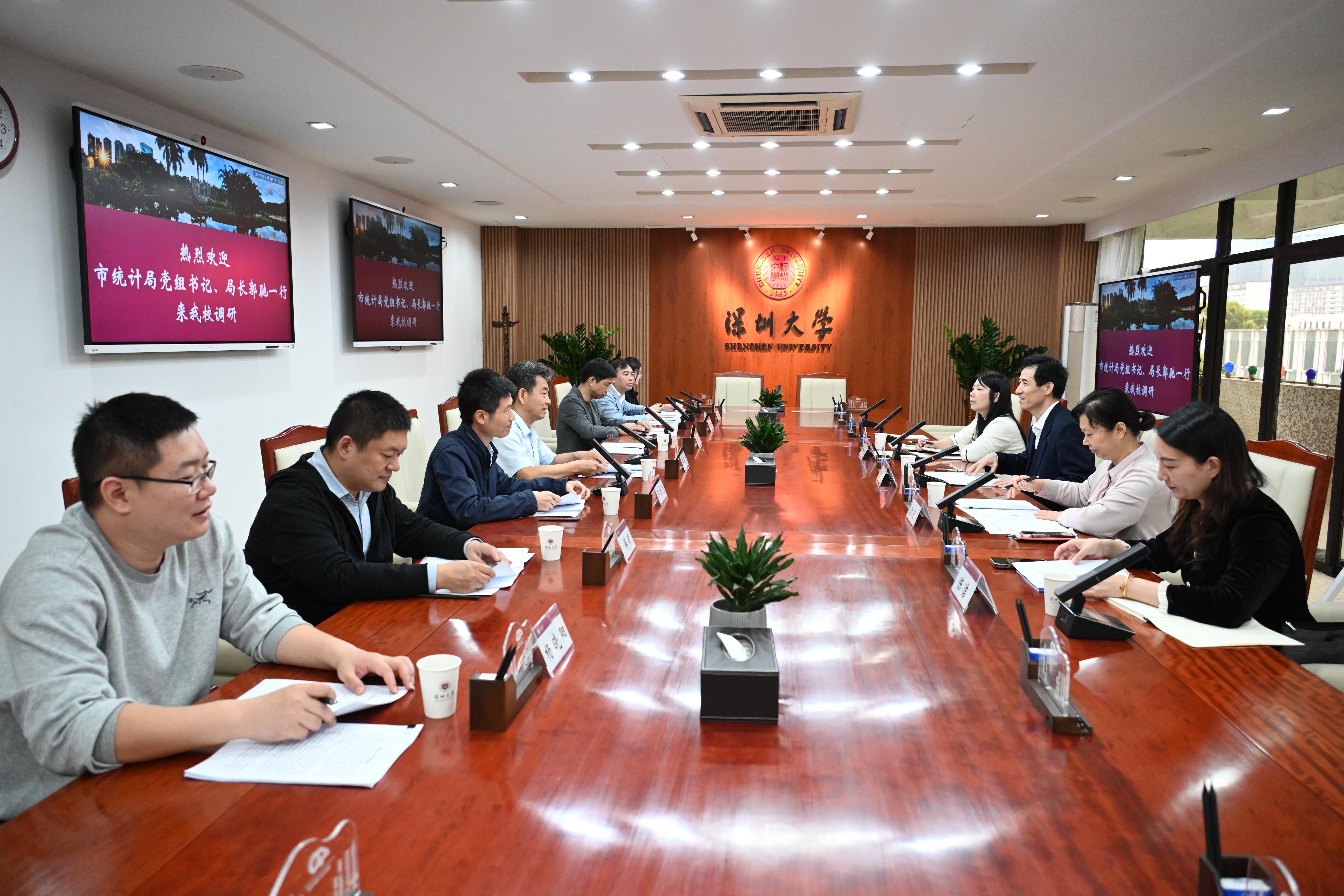 11月19日,深圳市统计局党组书记、局长郭驰,党组成员、副局长沈宜带队来到乐竞平台调研。乐竞平台校长毛军发在汇元楼205会见来宾,乐竞平台党委副书记、纪委书记王月兴在汇元楼401与来宾展开座谈。