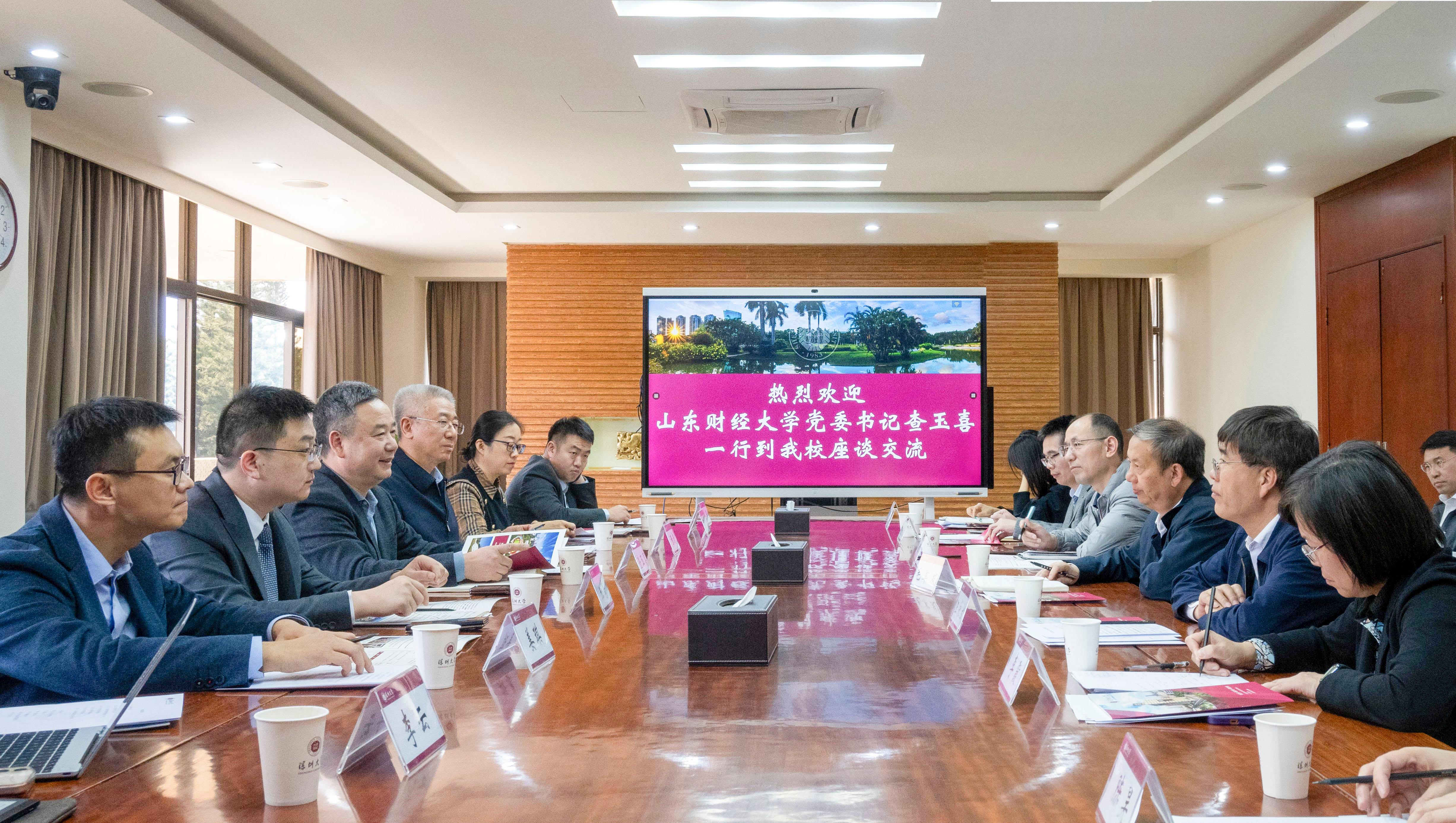 12月17日,山东财经大学党委书记查玉喜,党委委员、副校长张新一行来乐竞平台调研。乐竞平台校长毛军发、副校长汪永成会见来宾,双方在粤海校区汇元楼301会议室座谈。