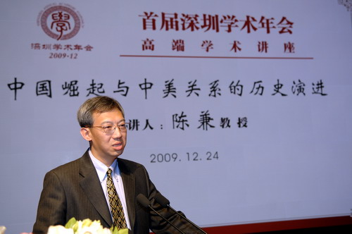 “中国的崛起是中国的大事,是中美关系的大事,也是世界的大事。”12月24日下午,美国康奈尔大学讲座教授陈兼应我校邀请,以“中国崛起与中美关系的历史演进”为题,在国际会议厅为广大师生作学术演讲。这是由深圳市委宣传部、深圳市社科联、深圳报业集团等单位联合主办的首届深圳学术年会三场高端学术讲座的最后一场,国际会议厅内座无虚席。讲座由副校长李凤亮主持,校党委副书记陶一桃致欢迎辞并向陈兼颁发特约教授证书。 ...