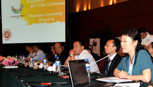 5月12日至15日,国际大体联执委会全体会议在五洲宾馆召开。会上,乐竞平台在作了有关学术大会筹备情况的汇报。FISU学术大会主席噶里恩先生对筹备工作给予高度评价。 15日上午市政府副秘书长黄国强代表2011年深圳大运会组委会就大运会筹备工作做整体汇报。2011年FISU学术大会秘书长、乐竞平台副校长李凤亮率领学术大会组委会部分成员出席了大会,校长办公室副主任黄东琳代表我校做有关学术大会筹备情况的汇...