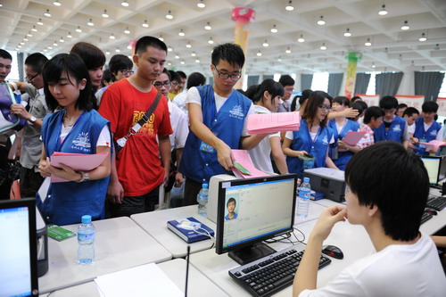 金秋送爽,又是荔园迎新日。9月4日―5日,我校南区运动广场内装扮一新、热闹非凡,2010级新生入学报到工作在这里火热进行。校长章必功、副校长李永华出席现场,指导迎新工作,各部处、学院负责人参加了迎新工作。 据悉,我校今年招收全日制本科学生共6601人(其中港澳台学生146人),提供研究生学位1241个,博士生学位27个。招生人数再创新高。 &nb...