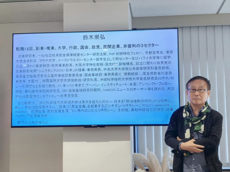 铃木崇弘教授为研学团详细介绍了日本的经济变迁情况,并与中国的经济发展进行了对比分析。铃木先生通过丰富的数据和生动的案例,展示了日本从战后经济复兴到经济高速增长、再到泡沫经济破裂及后来的经济结构调整的全过程。他特别强调了政府在经济发展中的角色与作用,以及制度创新对经济发展的推动作用。同时,铃木教授也指出了中国经济在快速发展过程中面临的挑战与机遇。通过铃木教授的讲解,研学团深刻认识到了中日两国在经济发展道路上的异同之处,为我国公共管理的实践提供了有益的启示。
