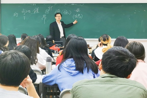 11月19日上午,第二场教学观摩课是由人文学院宫钦第老师主讲的《古代汉语》,本节课的主要内容为代词。宫老师在课堂上首先带领大家学习古文字的练习,他用 “儿”字举例,从甲骨文到金文,再到小篆,如小儿头颅未合之形,十分形象。课前热身之后,本节课的主角出现,即代词。宫老师先讲解了代词的分类,在人称代词中,宫老师让会说客家话的同学来展示当地的方言,因为一些南方的方言的很多保留了上古汉语的特点,其中北方的一些方言也有留存,用方言的举例使语言更加具有生活性与趣味性,在场的各位青年教师都全神贯注的听讲,感受到了古代汉语的无穷魅力。