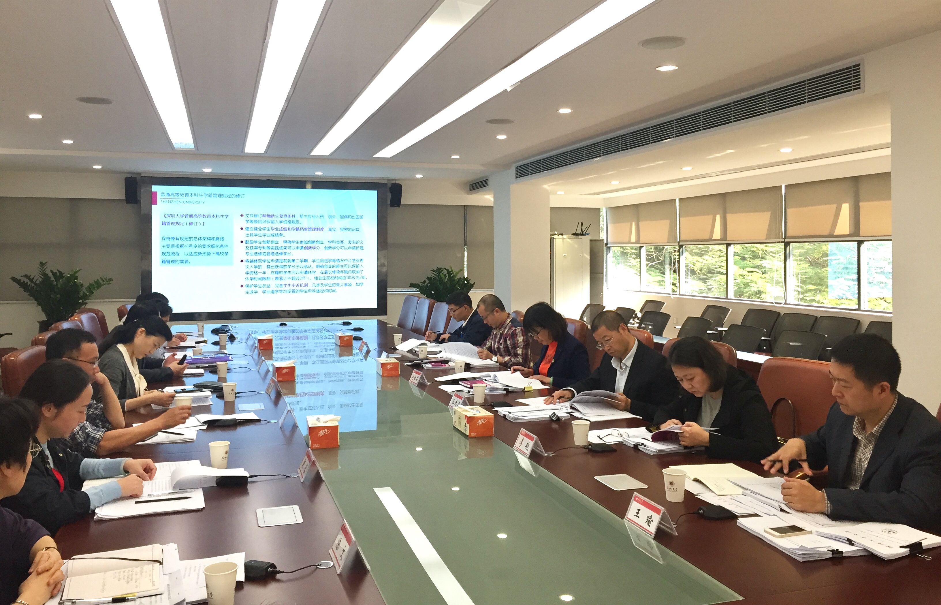 会上,黎军副校长对检查组一行表示欢迎,并简要介绍了我校的发展沿革、办学定位、人才培养等方面的基本情况。她强调,修订学籍学历管理条例工作,是规范高等学校办学行为、维护教育的公平公正的重要举措。深大依法治校,依规治校。规范制度即是保障学校,也是全面服务学生健康成长成才、切实保障学生利益的重要途径。