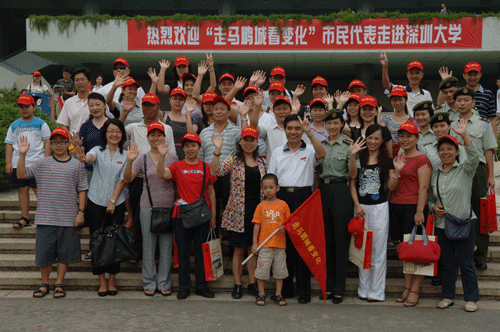 “观察发展中的变化,聆听变化中的故事”―昨天(9月16日)“市民巴士”驶进第13站乐竞平台,乐竞平台校长章必功、党委副书记陶士平率各学院、部门负责人早早就等候在校门前,热烈欢迎“走马鹏城看变化”参观团的到来。章必功深有感慨地说,“秋高气爽的季节,如此阵容的市民代表团走进校园、走近深大,这在我们建校24年历史上还是第一次。”