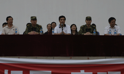 章必功代表在校师生祝军训学员中秋快乐! 他指出,同学们来到部队锻炼是一次难得的机遇。部队是一所精神永远高昂,热情永远燃烧的大学校,对于同学们日后的学习和生活中保持一颗上进的心以及进取精神起了表率的作用;部队又是一所艰苦奋斗的大学校,对于锻炼同学们的意志品质和吃苦耐劳的精神会产生重要的影响。他希望大家珍惜军训机会,在教官们的精心指导下刻苦训练,满载而归。