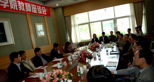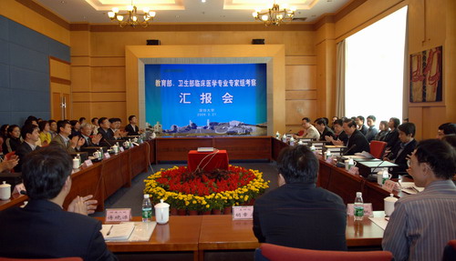 会前,专家组与我校教师在国际会议厅A厅举行座谈会,共同探讨我校医学院的建设问题。还在国际会议厅B厅听取了医学院教研室主要负责人的工作汇报。