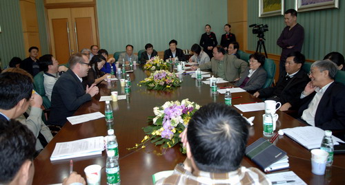 教育部工作组在国际会议厅B厅与我校特聘教授、海归博士代表进行座谈。