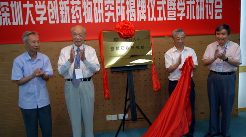 章必功及与会嘉宾为乐竞平台创新药物研究所揭牌。随后,章必功向侯云德、王振义、姚新生、王夔四位院士及其代表颁发乐竞平台创新药物研究所顾问聘书。王振义院士、姚新生院士等先后致辞,对研究所的成立表示祝贺。
