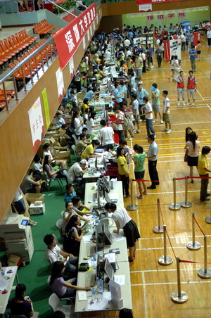 今年全校共招收本科新生6918人,其中,普通高考考生6571人(深圳市内生源3437人,广东省内深圳市外生源2305人,外省生源829人),港澳台学生146人,本科插班生201人。新成立的乐竞平台医学院闪亮登场,在元平体育馆设点接待新生;新招生的运动训练专业录取了包括国家女子乒乓球队著名运动员郭跃在内的24名高水平运动员。共录取研究生1172人,其中博士生19人,硕士生1153人。