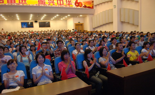 在隆隆的礼炮声和国旗仪仗队铿锵有力的脚步声中,各直播会场一片肃穆;当鲜艳的五星红旗在天安门广场冉冉升起时,全校也响起了师生们嘹亮的国歌声。在随后的阅兵式和群众游行的直播中,全场掌声、欢呼声不绝于耳,此起彼伏。大家纷纷为受阅方阵的精彩表现而喝彩,为祖国建设发展的巨大成就而喝彩。