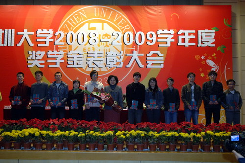 12月28日,我校在科技楼一号报告厅举行了2008―2009学年度奖学金表彰大会。深圳市烟草专卖局副局长崔茂德、腾讯公益慈善基金会执行秘书长窦瑞刚、永亨银行(中国)有限公司行长陈宏略、恒生银行(中国)有限公司深圳分行行长吴家辉,我校党委副书记陶一桃、副校长李永华、各学院(部)主管学生工作领导以及学生代表出席了表彰会。